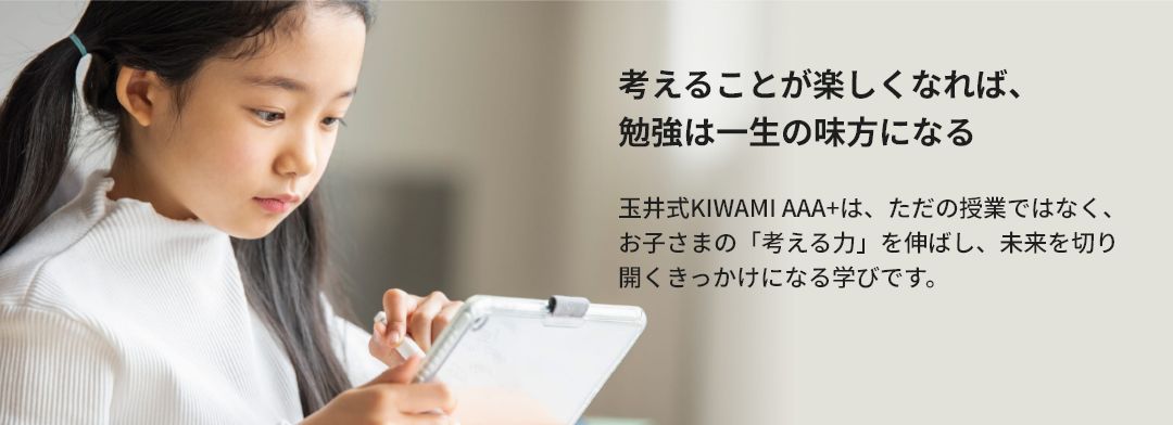 KIWAMI AAA+は無学年・進級式の学習スタイル。学年にとらわれず、理解度や習熟度に応じて、ぴったり合ったレベルから学習をスタートできます。学年を超えた内容にも挑戦できるため、学ぶ意欲や得意をどんどん伸ばしながら、本物の学力を育てることができます