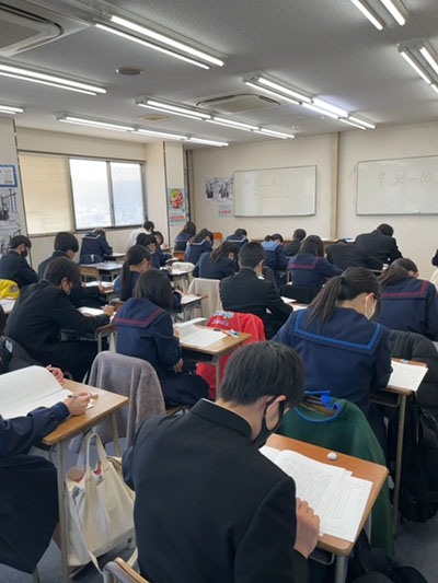- 入試完全演習講座 「入試問題の演習を通じて、得点力のアップ」公立、私立の過去問演習を通じて、得点力の増強。記述式で得点できるようにすることで、高得点を狙う。入試に向けた総合演習により、古典で着実に得点できるようにする。