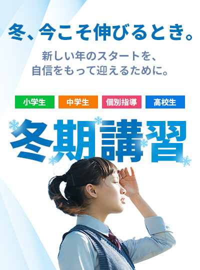 一人ひとりの理解度に合わせて進める個別進級型授業で、 「わかった!」「できた!」という実感を積み重ねながら、自信と 学ぶ意欲を育てます。少人数のあたたかい雰囲気の中で、勉強が 楽しいと感じられる冬にしましょう。