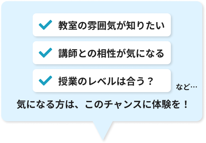 事前に確認できます。 - 1週間の体験授業で、学習内容のレベル感やペースを実感できます。